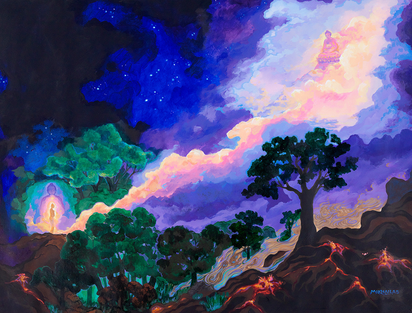As a child, Maria knew she wanted to be an artist. Throughout her life, Maria’s artistic expression has paralleled her spiritual journey, leading her to create images inviting contemplation or meditation. Maria seeks to express the spiritual dimension in her painting. Her work now displays a dynamic union of traditional and process painting, seemingly effortlessly expressing her inner experiences.